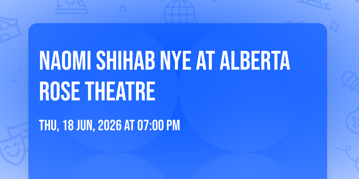 ✨ Embark on an extraordinary journey at Naomi Shihab Nye at Alberta Rose Theatre, where every moment promises to be unforgettable! 🌟 Imagine of transforming Alberta Rose Theatre in the heart of Portland, OR into a realm of endless possibilities. 📅 Join us on June 18th, 2026 at 07:00 PM for an experience that will challenge your imagination and exceed your expectations. 🎯 This carefully curated event combines the finest elements of entertainment, innovation, and community spirit. Whether you're an adventure seeker, culture enthusiast, or someone looking for unique experiences, this event offers something special for everyone. 🎊 Don't miss this chance to be part of something extraordinary!