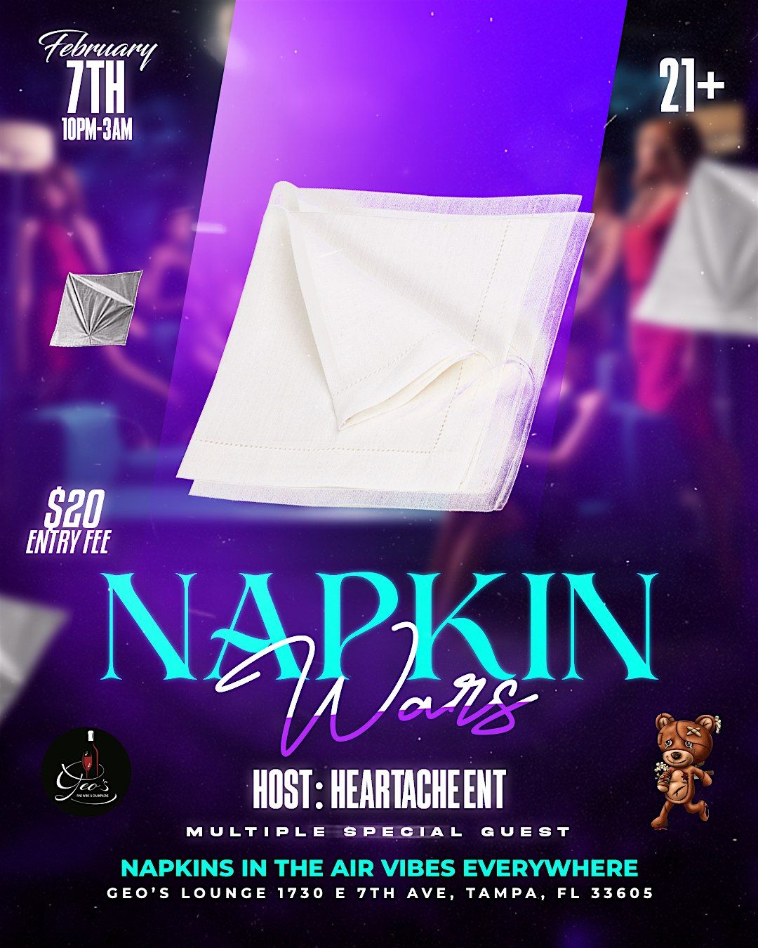 Napkin Wars is a high-energy nightlife experience where music, crowd energy, and friendly competition collide. Known for packed venues, surprise guest appearances, and nonstop vibes, Napkin Wars brings crews together for an unforgettable night of napkin-throwing fun. Guests enjoy top DJs, interactive party moments, and an electric atmosphere that turns the venue into a citywide celebration. With limited tickets, exclusive sections, and viral energy, Napkin Wars has quickly become one of the most talked-about party events, attracting trendsetters, partygoers, and nightlife lovers looking for something different. Whether you’re repping your crew or just here for the vibes, Napkin Wars delivers a one-of-a-kind party experience you won’t forget.