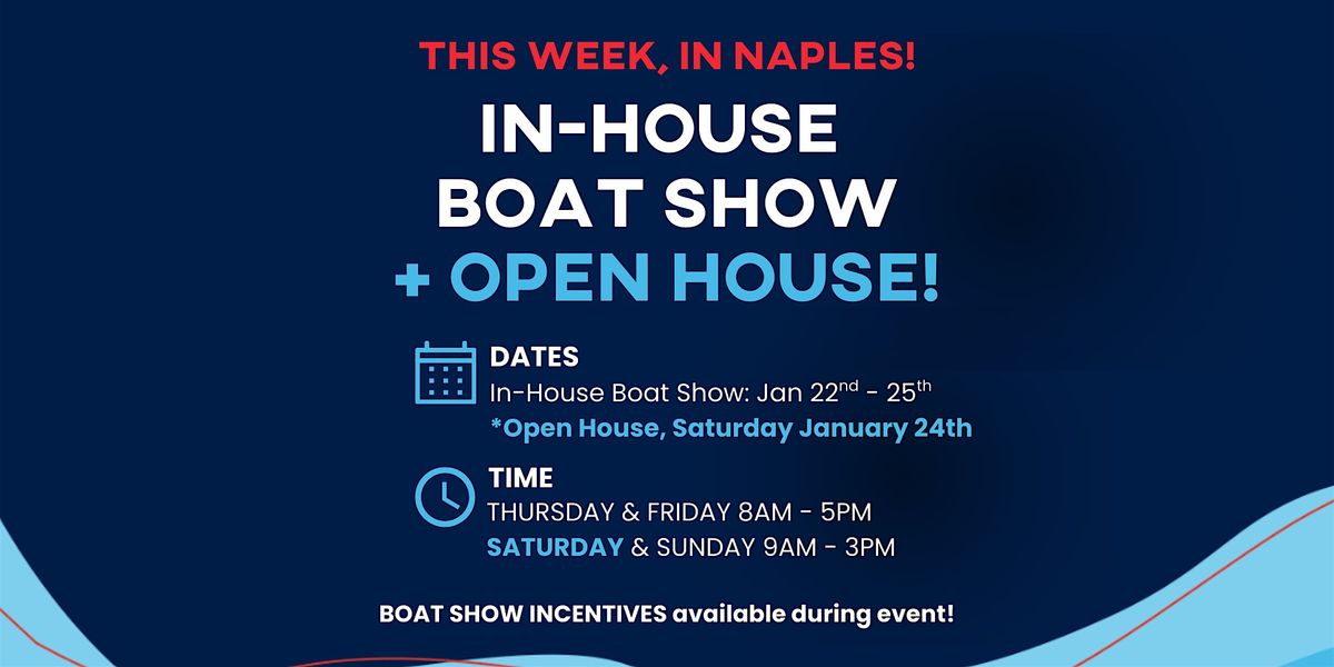 While the Naples Boat Show is in town, we’re hosting our own In‑House Boat Show at The Boat House of Naples. Stop in to explore inventory, compare models, and connect with our team without the crowds.