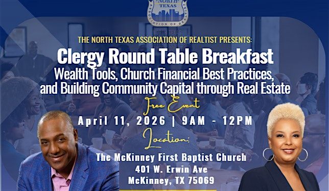 Join us for a delicious FREE breakfast and engaging discussion at The McKinney First Baptist Church (401 W Erwin Ave) to explore the importance of stewardship in our community. This in-person event will bring together accredited professionals, speakers, faith-based community leaders, and strategists to share insights and best practices for preserving and enhancing our land for future generations and to unveil wealth-building strategies. Don't miss this opportunity to connect and make a positive impact on our environment. Register now to secure your spot at the table! Registration is required for headcount. For more information call Roz Booker, 972-679-9311, or email [email protected]