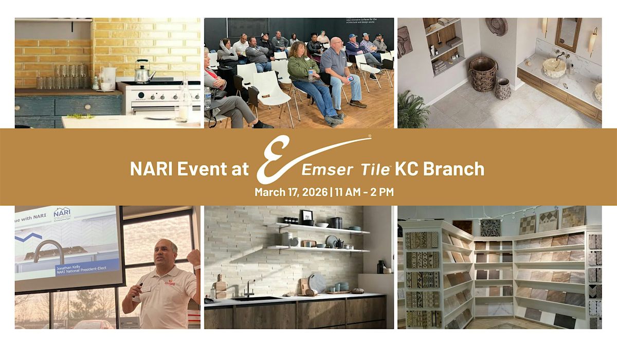 Welcome to the NARI Event at Emser KC Branch! Join us on March 17, 2026 at 11:00 AM for exciting activities and networking opportunities. This event is perfect for industry professionals looking to connect and learn from each other. Don't miss out on this chance to expand your knowledge and grow your network. See you there!
