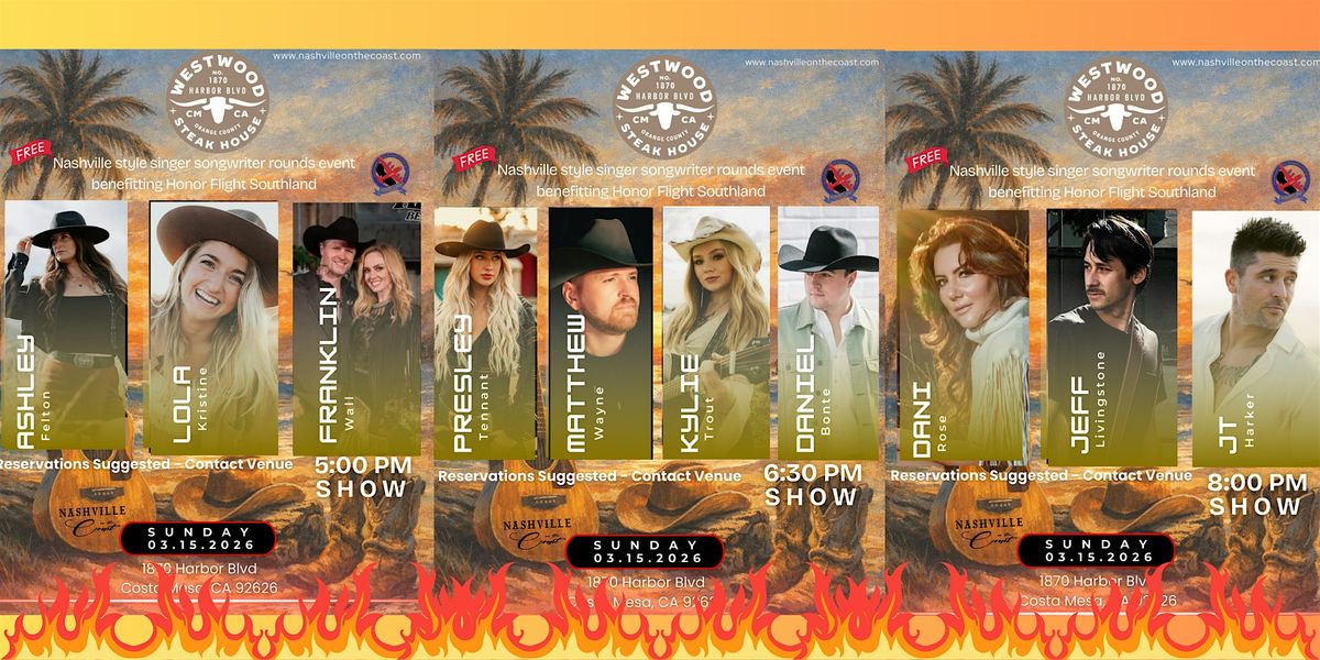All proceeds (donations welcome) benefit Honor Flight Southland, an 501 (c) 3 non-profit organizations that sends vetererns to Washington DC at no cost to them. For more information visit www.nashvilleonthecoast.com