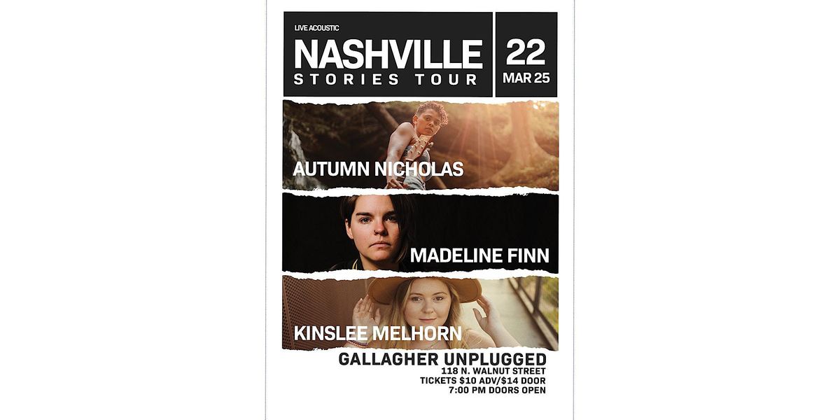 The Nashville Stories Tour makes a stop at Gallagher Unplugged on Friday, March 25th at 7pm. They are Autumn Nicholas, Madeline Finn, and Kinslee Melhorn. Read more about each of these artists below.
