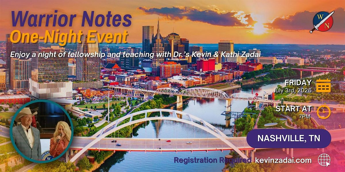 Dr. Kevin and Kathi Zadai would love you to join them at the one–night event in Nashville, Tennessee. Enjoy a night of fellowship and teaching. We hope to see you there!