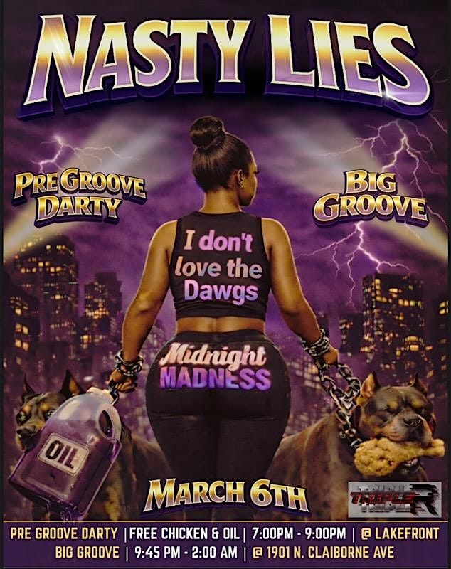 Come out and Groove with Bruhz. Put on your best nasty lies shirt and come party. Bruhz will give out wristbands that grants free entry!!