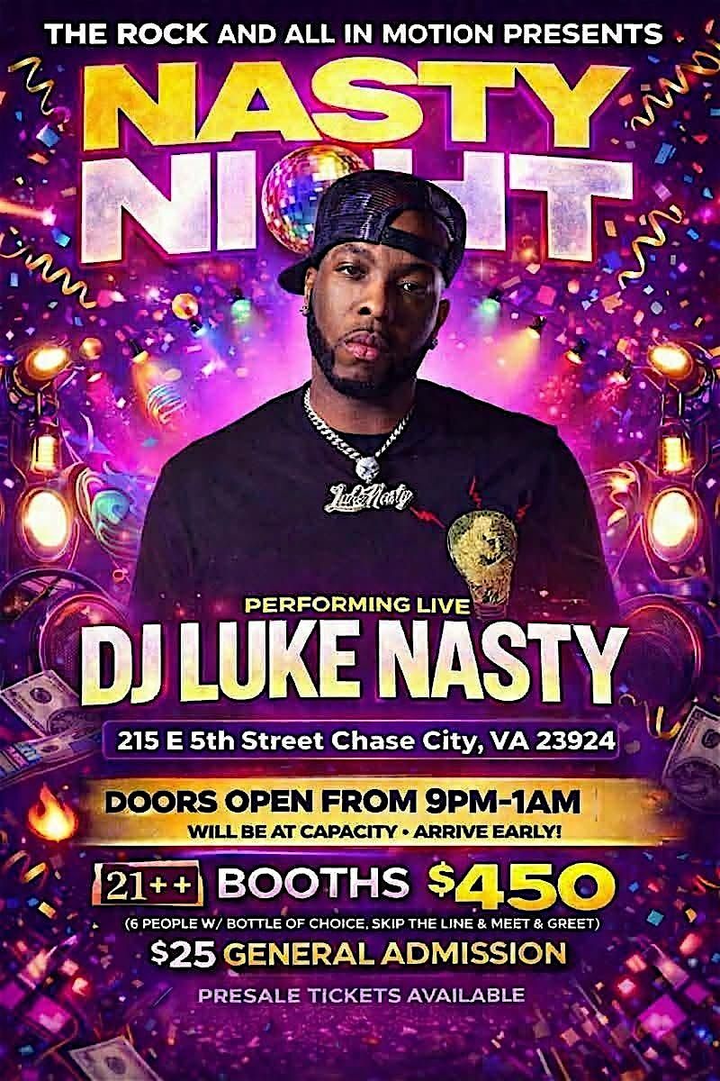 The Rock and All in Motion presents “Nasty Night” featuring Major Recording Artist DJ Luke Nasty