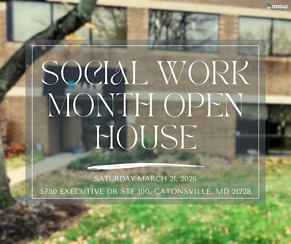 Join us for NASW-MD's first-ever Open House on Saturday, March 21st, from 11:00 AM to 3:00 PM at our Baltimore office! In honor of Social Work Month, we're opening our doors to members, prospective members, and anyone curious about what NASW-MD has to offer. Stop by anytime during the four-hour window for light refreshments, connect with board members and committee leaders at information tables, and learn about the programs, resources, and advocacy work that make our chapter community strong. We'll screen a short video about NASW membership at 12:00 and 1:30 PM, but feel free to come and go as your schedule allows. This is a casual, welcoming event, perfect for meeting fellow social workers, asking questions, exploring volunteer opportunities, or simply seeing what we're all about. Whether you've been a member for years or are just exploring membership, we'd love to see you there!