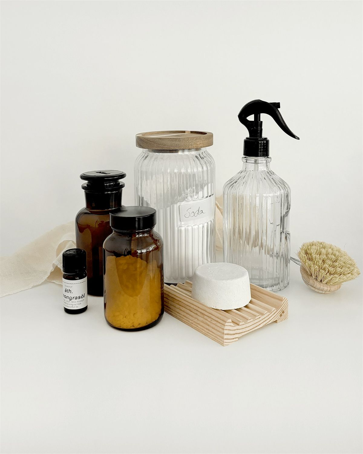 4 bis 5 von Dir selbst hergestellte Reinigungsprodukte