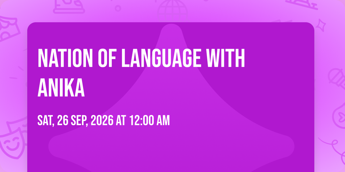 π Location: 45.5289, -73.5439π Welcome to Nation of Language with Anika, where the impossible becomes possible and dreams take flight! ποΈ Join us at Beanfield Theatre in the heart of Montreal, QC for an event that will redefine your expectations. π On September 26th, 2026 at 12:00 AM, witness the transformation of space and time into something truly magical. β¨ It's a curated experience combining the best of innovation, entertainment, and community spirit, creating moments that will be remembered for years to come. Whether you're a first-time visitor or a seasoned enthusiast, prepare to be amazed. π Book now to ensure your place in this unforgettable experience!