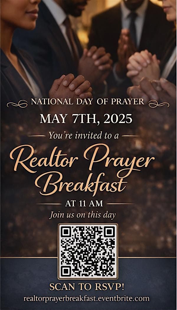 Join us for the Realtor Prayer Breakfast in honor of the National Day of Prayer! This in-person gathering is a fantastic chance to connect with fellow realtors, share inspirational moments, and start your day with uplifting prayer and great conversation. Don’t miss out on this meaningful event where community and faith come together. Looking forward to seeing you there!