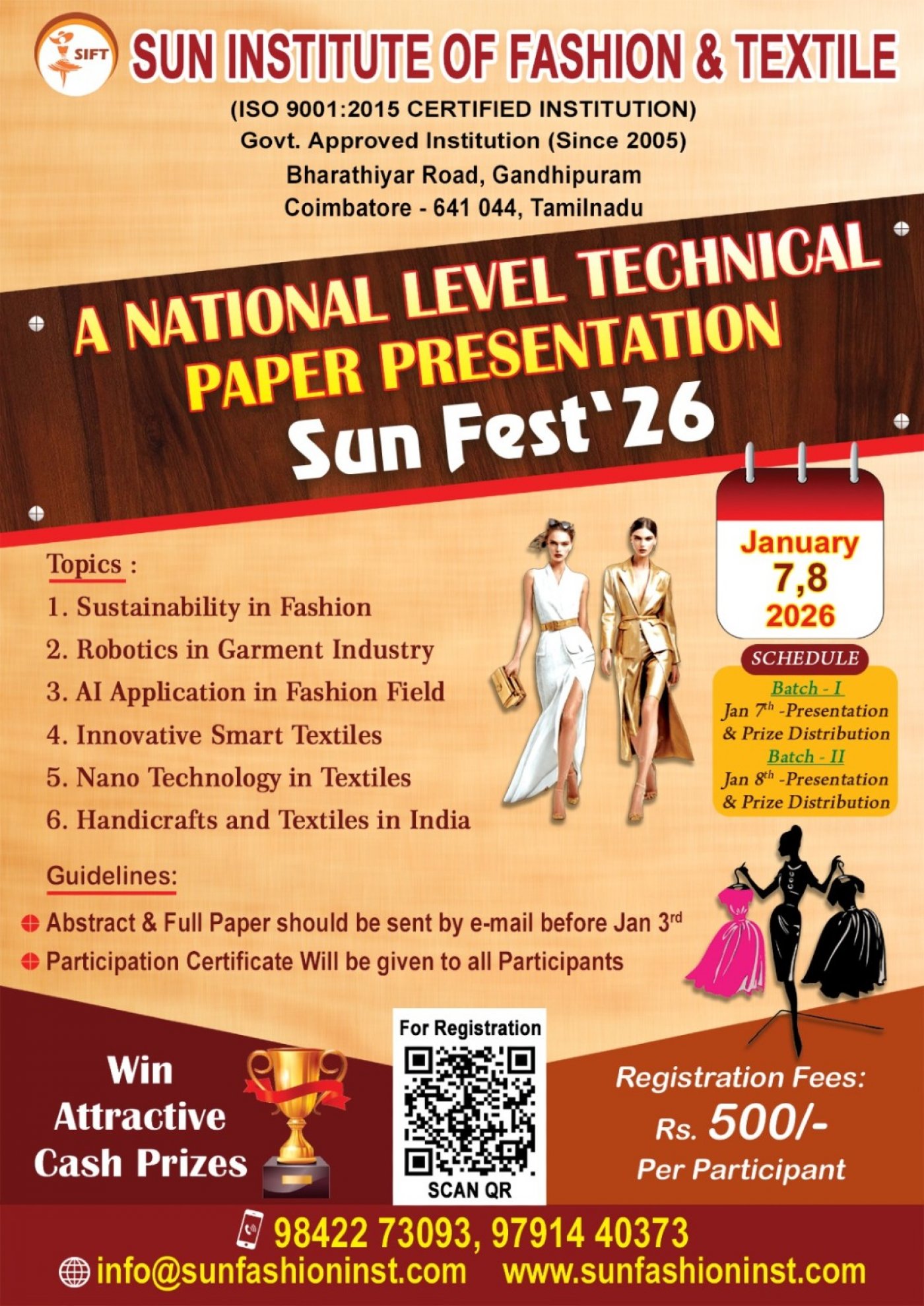 NATIONAL LEVEL PAPER PRESENTATION FOR FASHION AND TEXTILE STUDENTSÂ in Coimbatore.