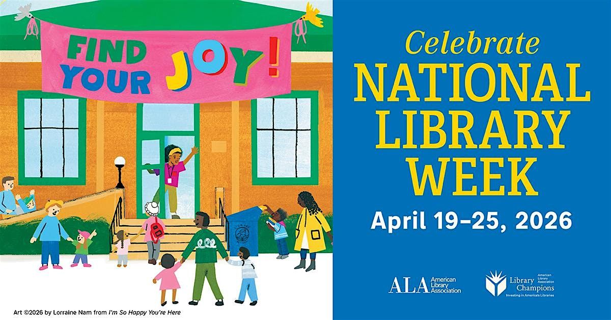 To honor the theme for 2026, Find Your Joy, we invite you to stop by our branch anytime during National Library Week to contribute to our community craft. You will be asked to respond to the prompt, "What brings you joy when you visit the library?" Your written response will be added to our Tree of Joy.