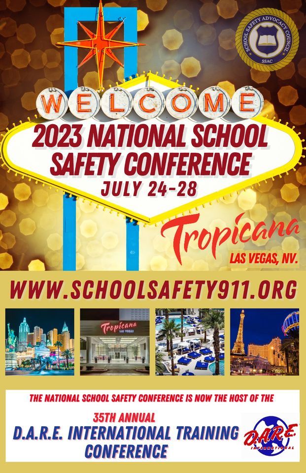 Be part of the Largest, most Comprehensive School Safety event anywhere. Now, 4 Major School Safety Conferences under 1 Las Vegas roof. Join the School Safety Advocacy Council, the International DARE Officers Conf, the National Association of Campus Police Chiefs Conf and the National Assoc of School Plant Managers Conf the same week…. Partake in sessions from any of the 4 major events. One HUGE Exhibition Hall….. Register at www.schoolsafety911.org
