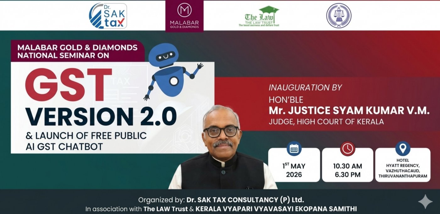 This National Seminar on GST Version 2.0, organized by Dr. SAK Tax Consultancy in association with The LAW Trust and KVVES, offers a comprehensive exploration of the evolving tax landscape through high-level academic launches and expert-led technical sessions. The event features the inauguration of a GST Academy and a free public AI GST chatbot, followed by a strategic roadmap for navigating modern tax requirements. Key technical segments address critical operational areas, including Input Tax Credit reconciliation, compliance strategies for MSMEs and small traders, and practical guidance on handling scrutiny notices and dispute resolution. Supplemented by a panel discussion on the future of tax technology and taxpayer empowerment, the seminar provides a vital platform for professionals to engage with senior IRS officials and legal experts to master the complexities of the GST regime.