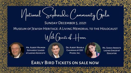 Join the Sephardic Jewish Brotherhood of America for a special National Sephardic Community Gala celebrating our collective Sephardic identity, culture, and community. The evening will feature delicious kosher Sephardic food, live music, special Sephardic guests of honor, dancing, and a communal Menorah lighting in honor of the 8th night of Hanukkah. The evening will be hosted at the beautiful Museum of Jewish Heritage: A Living Memorial to the Holocaust, and includes complimentary access to one of the Museum's featured exhibits. The evening will also celebrate the 105th Anniversary of the Sephardic Jewish Brotherhood, and bring together participants from our communities throughout the United States and around the world.