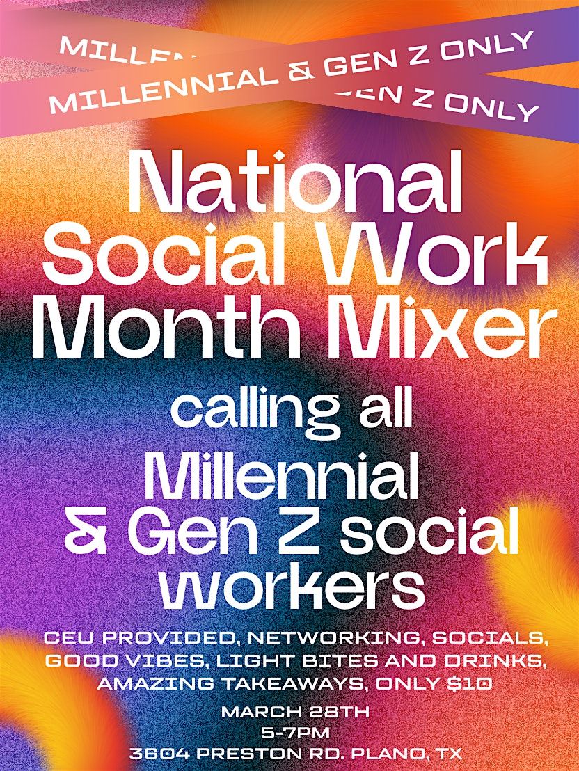Join us for a fun and relaxed in-person mixer celebrating National Social Work Month! This event is perfect for Gen Z and Millennials in the social work field to connect, share experiences, and build community. Come meet like-minded peers, enjoy great conversations, and celebrate the impact of social work together. Don’t miss out on this chance to network and unwind in a friendly atmosphere!