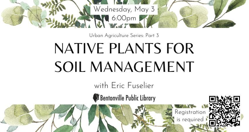 Urban Agriculture Series: Part 3Join us for a presentation from Eric Fuselier on how to use native plants to improve soil health. For adults. Registration is required.