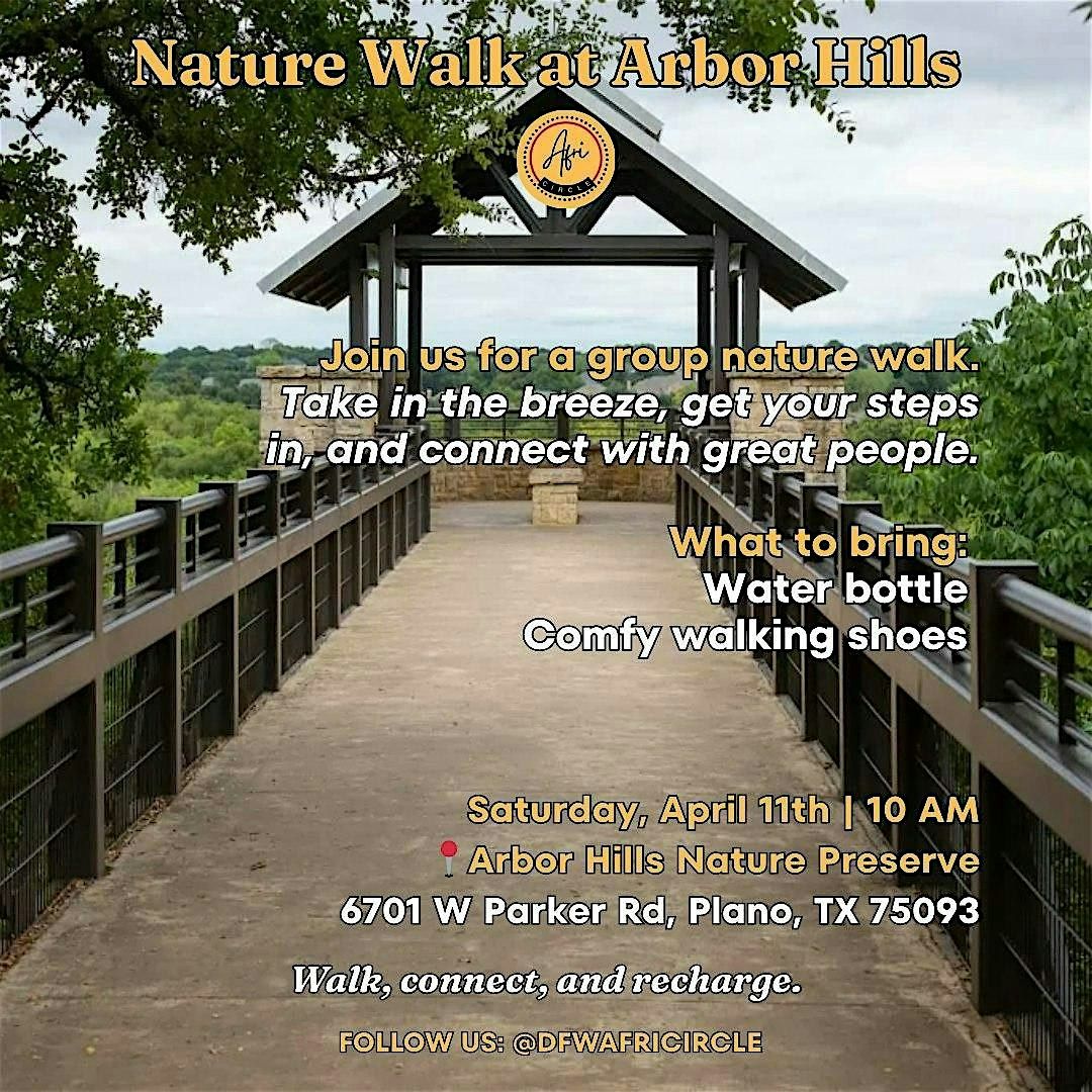 Come join us for a group nature walk at Arbor Hills Nature Preserve—enjoy fresh air, light movement, and make new friends!Be sure to bring your comfortable walking shoes and a water bottle!