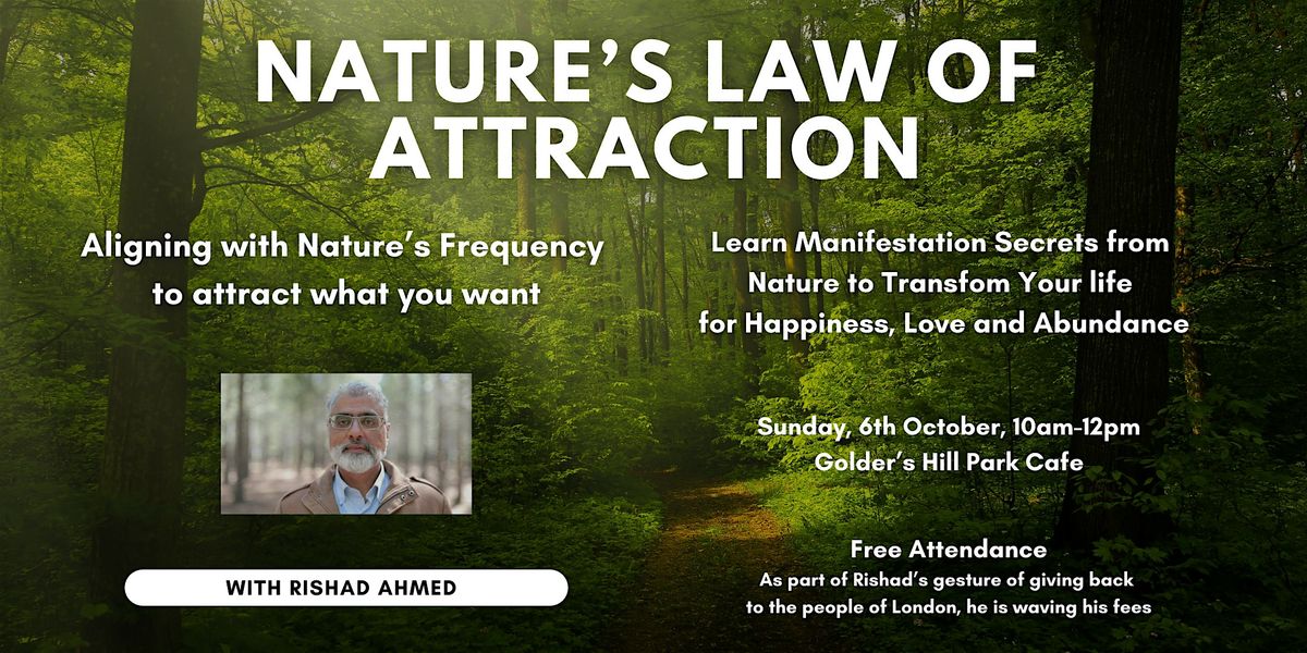 Come join us for a magical event at Golders Hill Park Cafe where we will explore the wonders of nature's attraction. Learn how to harness the power of the natural world to manifest your desires and create the life you want. This in-person event will be a unique opportunity to connect with like-minded individuals and deepen your understanding of the universal laws at play. Don't miss out on this special gathering in the heart of nature!