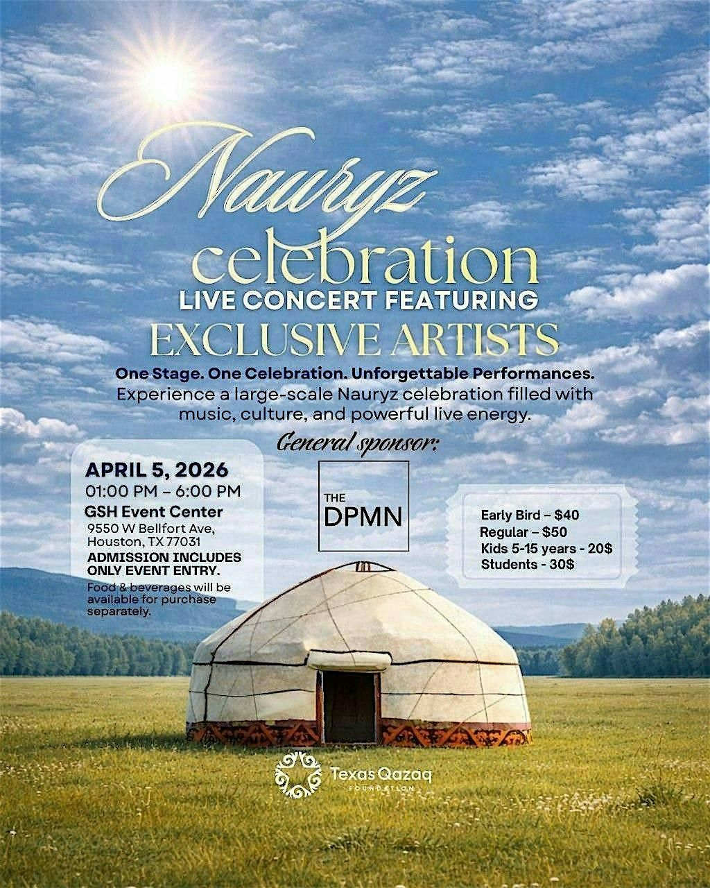 Join us for a vibrant Nauryz Festival and Concert on Sunday, April 5, from 1 PM to 6 PM at GSH Event Center.