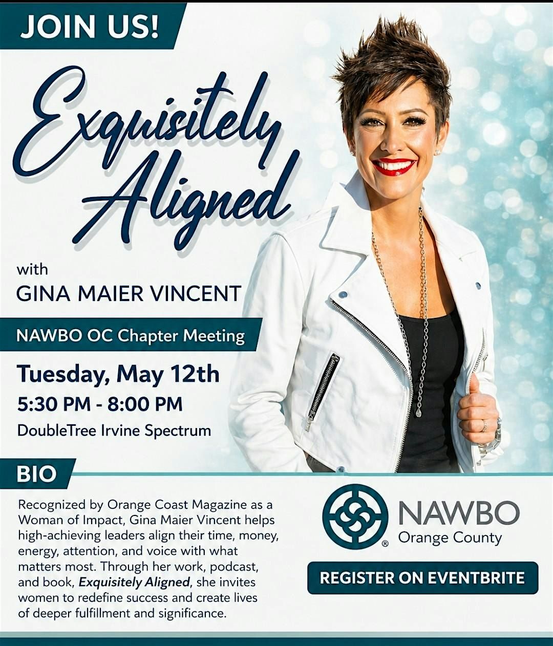 Join NAWBO Orange County for an evening with Gina Maier Vincent, founder of Exquisitely Aligned™ and author of Exquisitely Aligned: A Pocket Guide to Your Magnificent Future.