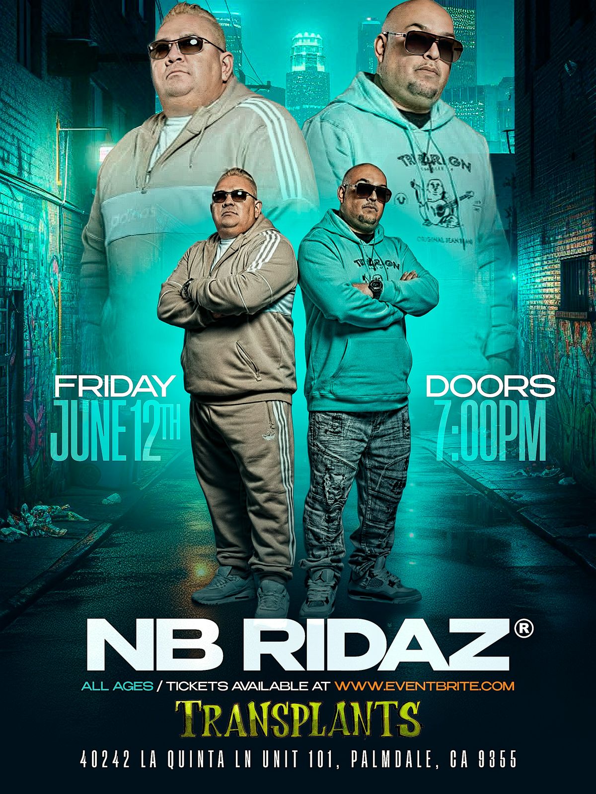 Get ready to vibe with NB RIDAZ in Palmdale - it's going to be a night to remember!
