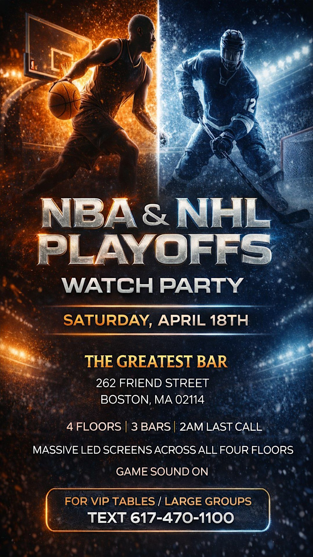 Catch the action of the NBA & NHL Playoffs on Boston’s biggest game-day setup at The Greatest Bar.