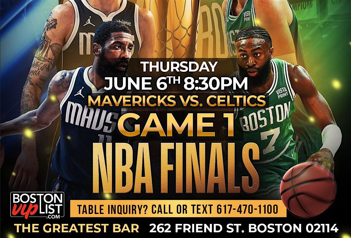 Join us on Thursday, June 6, 2024 starting at 6:30 PM to watch the Boston Celtics battle the Dallas Mavericks in Game 1 of the The Finals! Tatum vs. Luka, Kylie vs. Boston, KP vs. Dallas, it's gunna be an exciting series that you will not want to miss!!! What better place to catch the Celtics Game than right across the street from home court! We are ready to celebrate with you at The Greatest Bar!!!