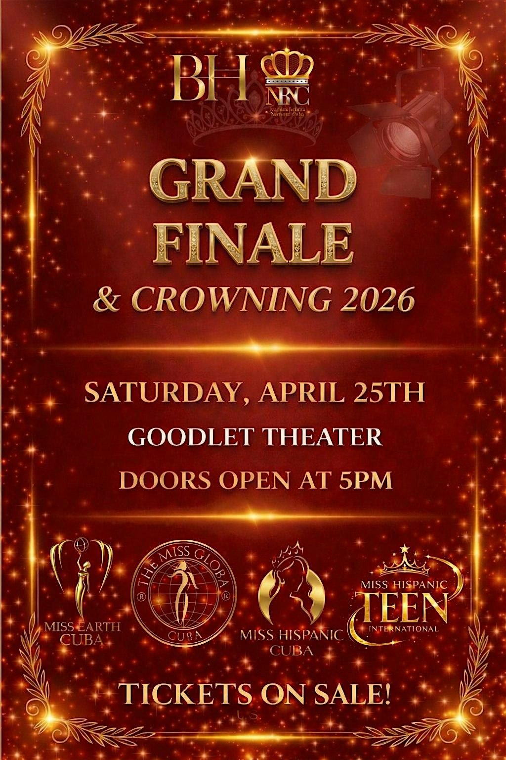 La Gran Gala Final de Coronación se celebrará el 25 de abril de 2026 a las 5:00 PM en el Teatro Goodlet, Hialeah, Florida.