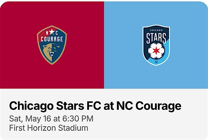 Join us for a North Carolina Courage professional women's soccer game on May 16th at 6:30pm as they take on the Chicago Red Stars.