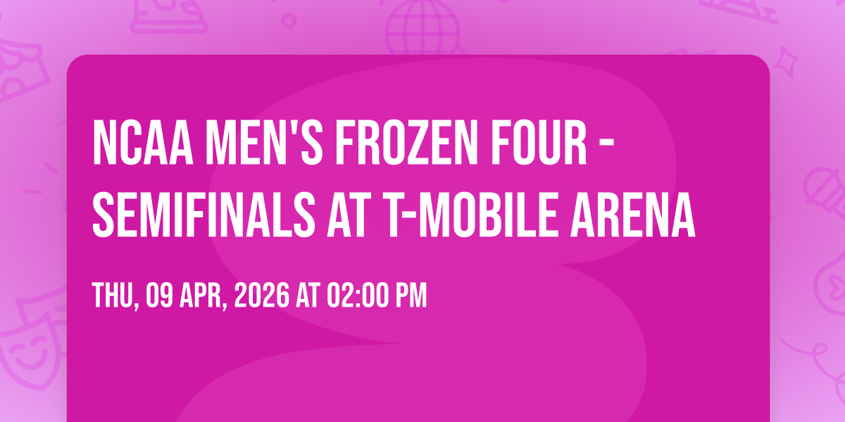 🌟 Journey into wonder at NCAA Men's Frozen Four - Semifinals at T-Mobile Arena, where extraordinary experiences await around every corner! 🏛️ Set against the backdrop of T-Mobile Arena in dynamic Las Vegas, NV, this event promises to exceed all expectations. 📅 Join us on April 9th, 2026 at 02:00 PM for a celebration that combines innovation, entertainment, and community spirit in perfect harmony. ✨ There will be an atmosphere where memories are made and stories come alive, ensuring every guest experiences something truly remarkable. 🎊 This is more than just an event; it's a journey into the extraordinary!