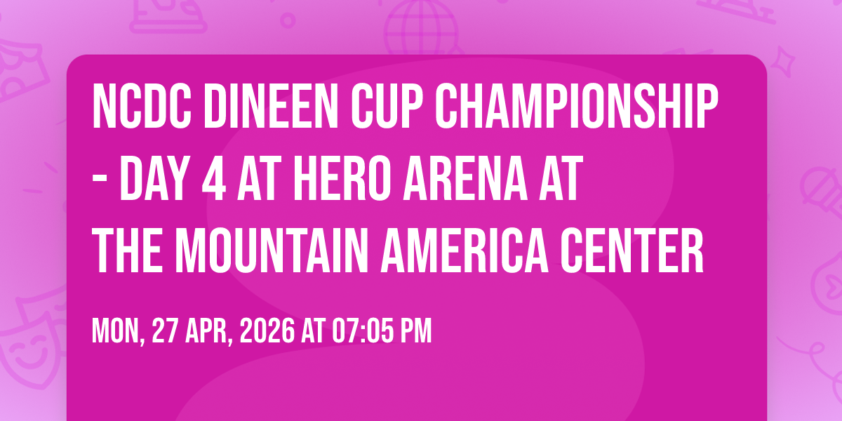 ✨ Experience the magic of NCDC Dineen Cup Championship - Day 4 at Hero Arena at the Mountain America Center, where moments become memories that last a lifetime! 🏛️ The iconic Hero Arena at the Mountain America Center in Idaho Falls, ID sets the perfect stage for an unforgettable celebration on April 27th, 2026 at 07:05 PM. 🌟 It's been a curated experience that brings together the best of entertainment and innovation, creating an atmosphere of wonder and excitement. From the moment you arrive, you'll be immersed in a world where the ordinary transforms into the extraordinary. 🎊 Book early to secure your place in what promises to be an event that will be talked about for years to come!