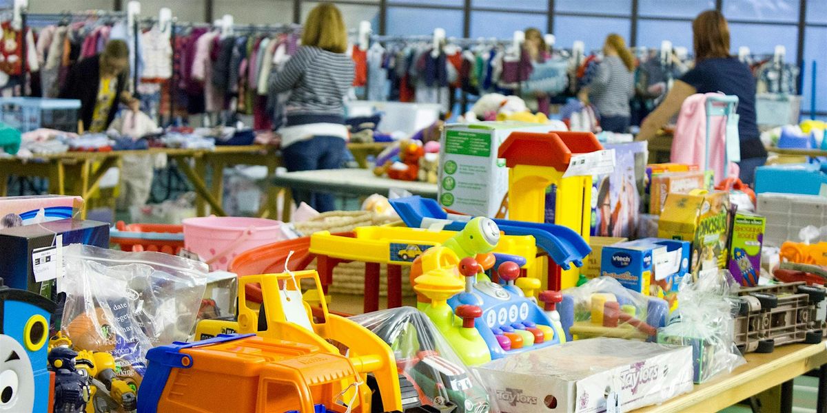 Items can include: maternity wear, baby equipment, toys, books, clothes for all ages (from newborn up to teenagers).