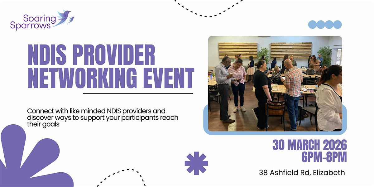 Join us for an evening of networking and collaboration at the NDIS Provider Networking Evening! This in-person event will be held on Monday March 30th, 2026 at 38 Ashfield Road, Elizabeth, SA 5112.