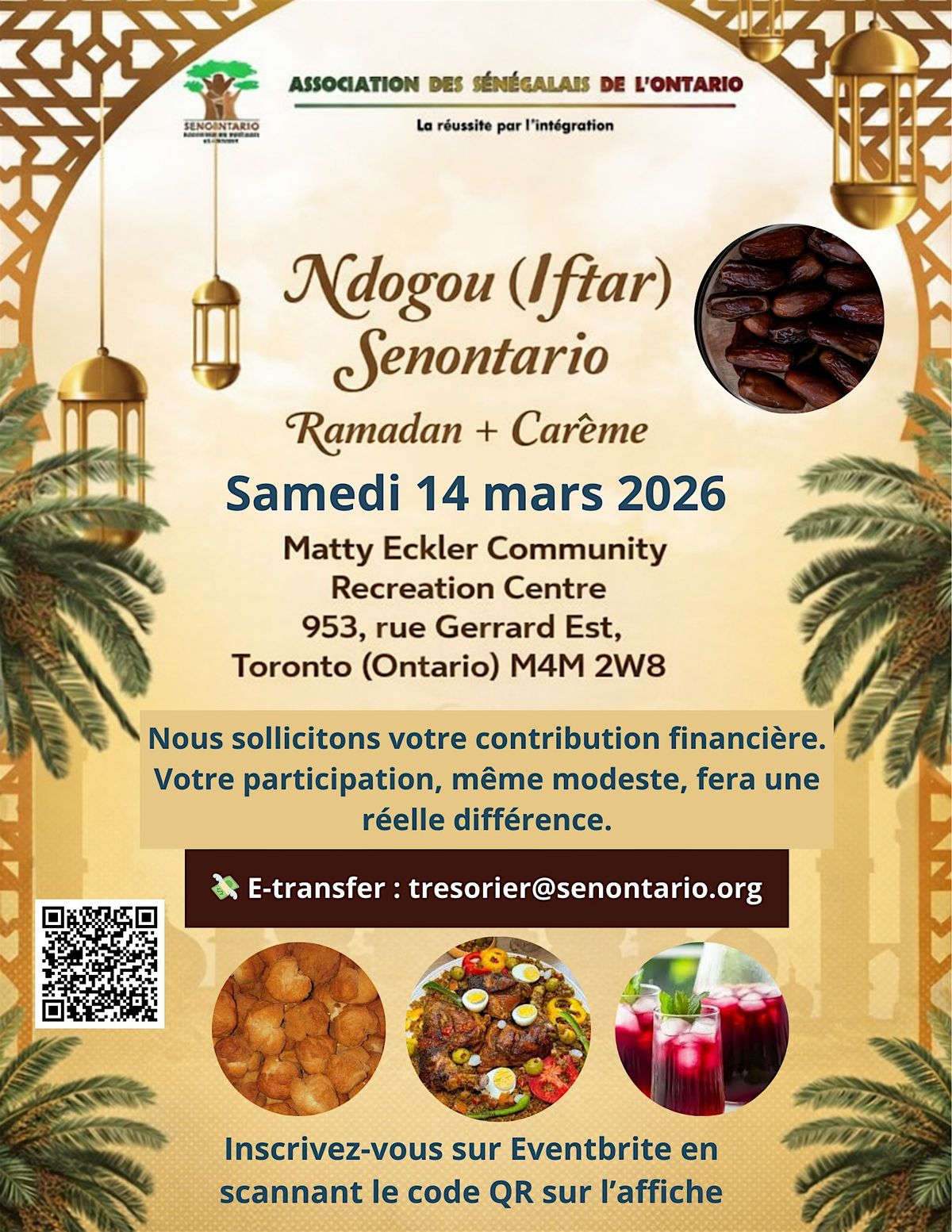 À l'occasion du Ramadan et du Carême, l'Association des Sénégalais de l'Ontario – SENONTARIO vous invite à partager un ndogou sénégalais authentique.