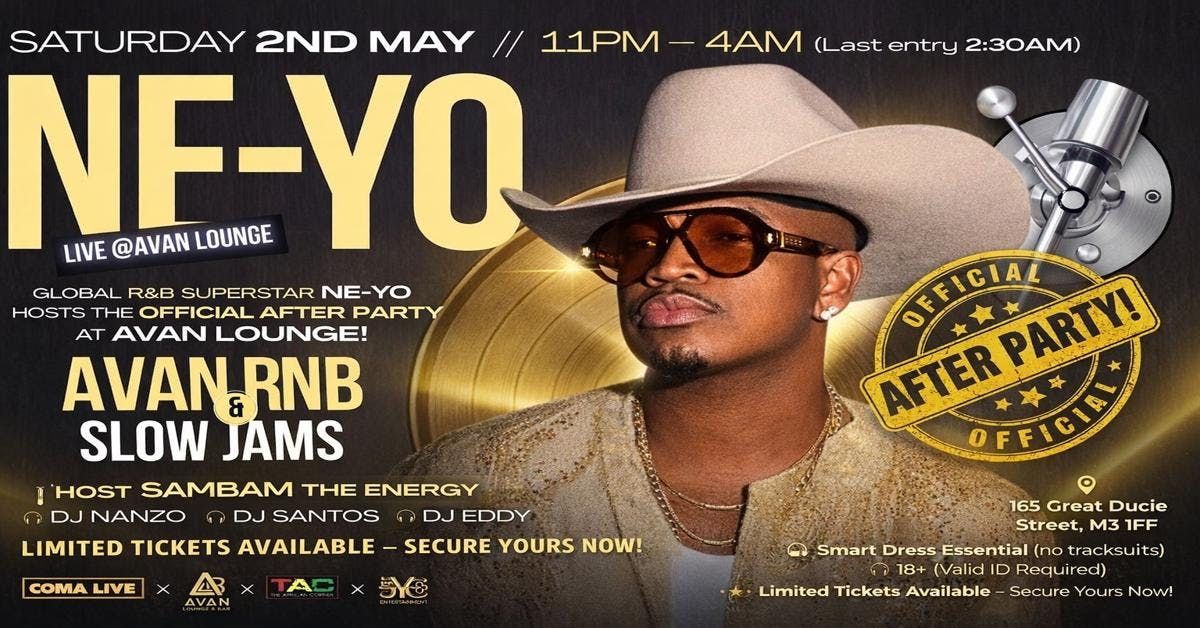 Manchester… this is the one 🔥We’re bringing you the official Ne-Yo after party at Avan Lounge. If you love r&b, slow jams and real vibes, you already know this is not a night to miss.