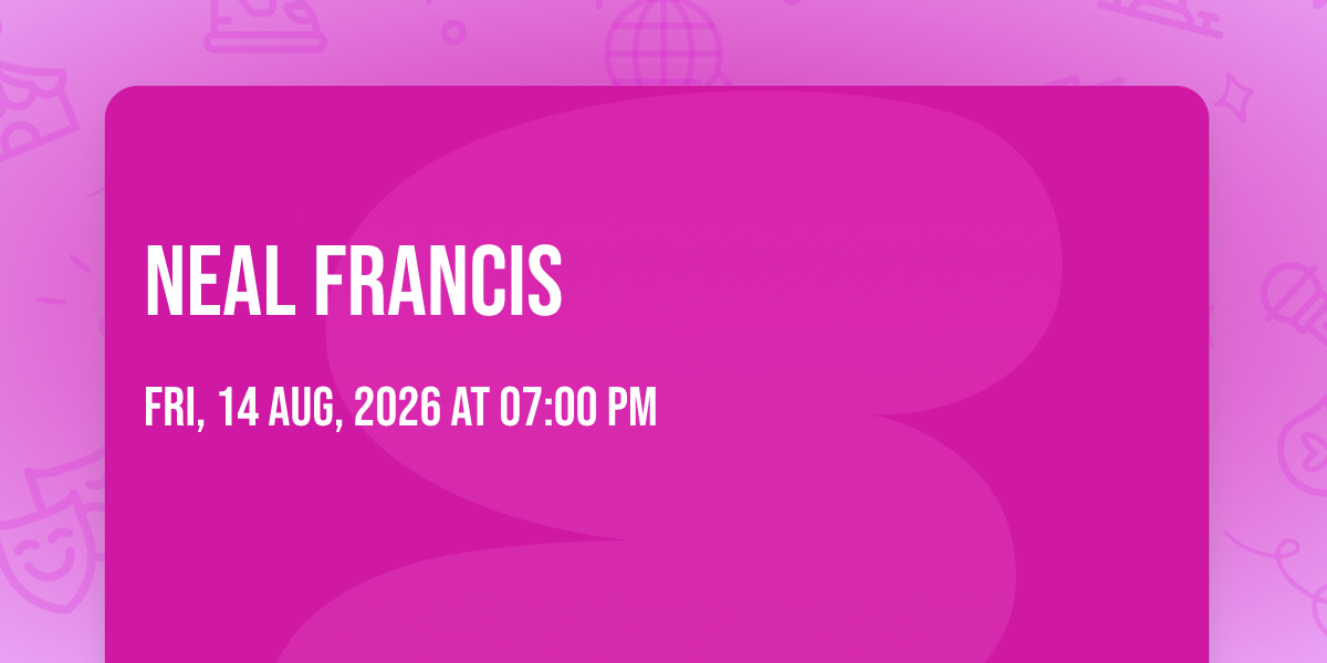 🎉 Welcome to Neal Francis, where dreams come alive and possibilities are endless! 🏛️ Join us at Union Craft Brewing in the heart of Baltimore, MD for an event that defies expectations. 📅 On August 14th, 2026 at 07:00 PM, be part of something truly extraordinary as we bring together innovation, entertainment, and pure magic. ✨ Every aspect has been carefully designed to ensure an unforgettable experience for all our guests. Whether you're seeking adventure, inspiration, or simply a break from the ordinary, this event promises to deliver beyond your wildest dreams. 🎊 Prepare for a journey into the extraordinary!http://maps.seatics.com/GeneralAdmissionEvent_2019-09-30_1208_SVGC_tn.gif