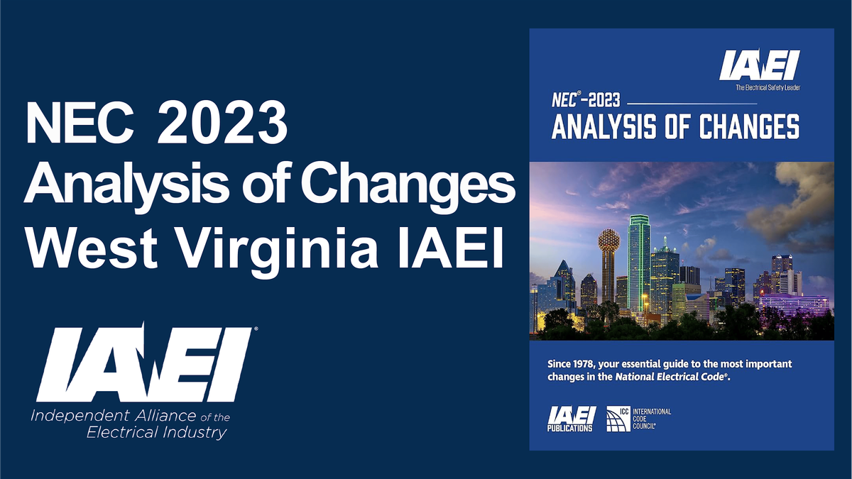 Join us for a full-day seminar focused on the significant changes introduced in the 2023 National Electrical Code® (NEC®), presented in alignment with the IAEI educational program and tailored for electrical professionals working in West Virginia. This course will provide a practical review of the most important revisions impacting design, installation, inspection, and enforcement of electrical systems.