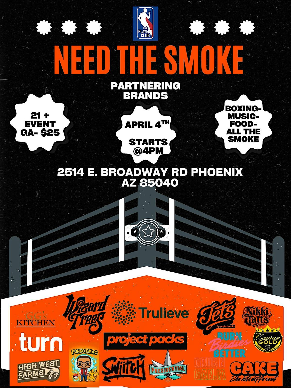 Get ready for an epic in-person experience at Need the Smoke! This is the place to be if you’re looking to kick back, have fun, and soak up some good vibes. We have not only exciting boxing matches but also Great music performances from some of the best Local talent AZ has to offer! Music by DJ Jsteele and DJ Izwideshut.