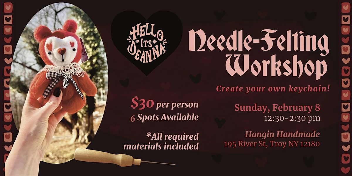 Come join us for a Needle-Felting Workshop located at Hangin’ Handmade Vendor Boutique. Learn the art of needle-felting and create your own felt friend! Keychain optional.