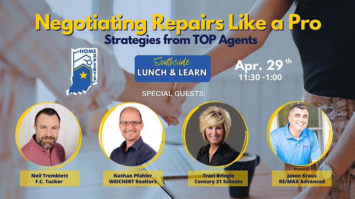 Join us for “Negotiating Repairs Like a Pro: Strategies from Top Agents,” a power-packed Lunch & Learn designed to boost your confidence and skill in one of real estate’s most challenging moments — inspection negotiations. Hear real stories from top‑producing agents: Neil Tremblett, Nathan Pfahler, Traci Bringle & Jason Kraus. You'll learn how they set expectations, communicate with the seller’s side, and secure mutually agreeable solutions that keep deals moving forward. Walk away with practical tactics you can use on your very next transaction.