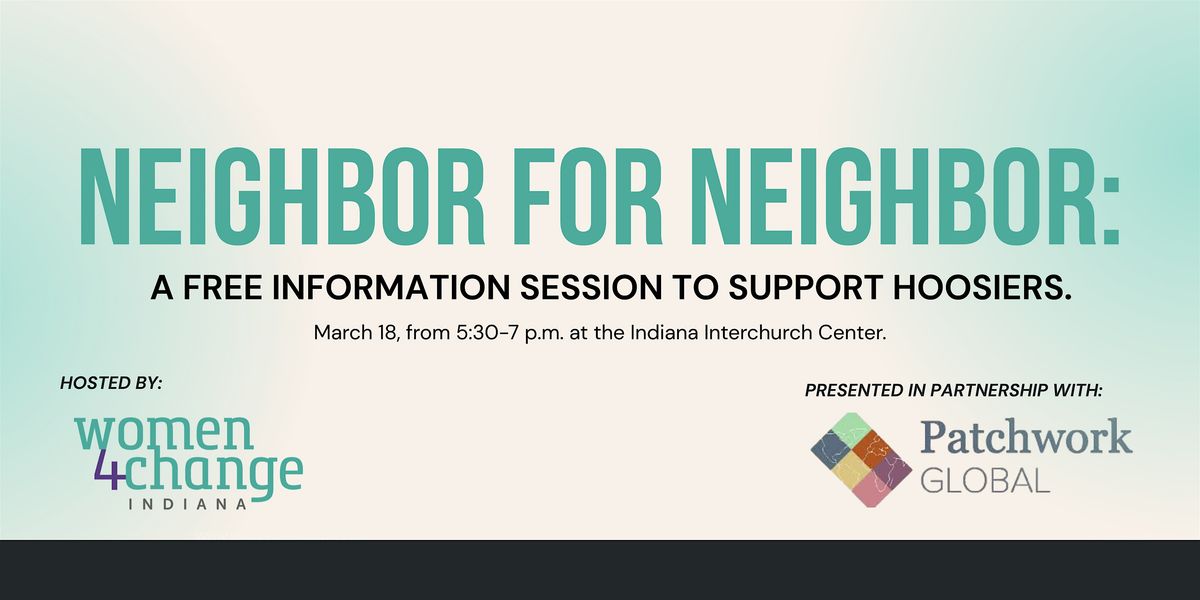 Patchwork Global and Women4Change Indiana are hosting an information session so you can learn how to get involved with the Neighbor-to-Neighbor program.