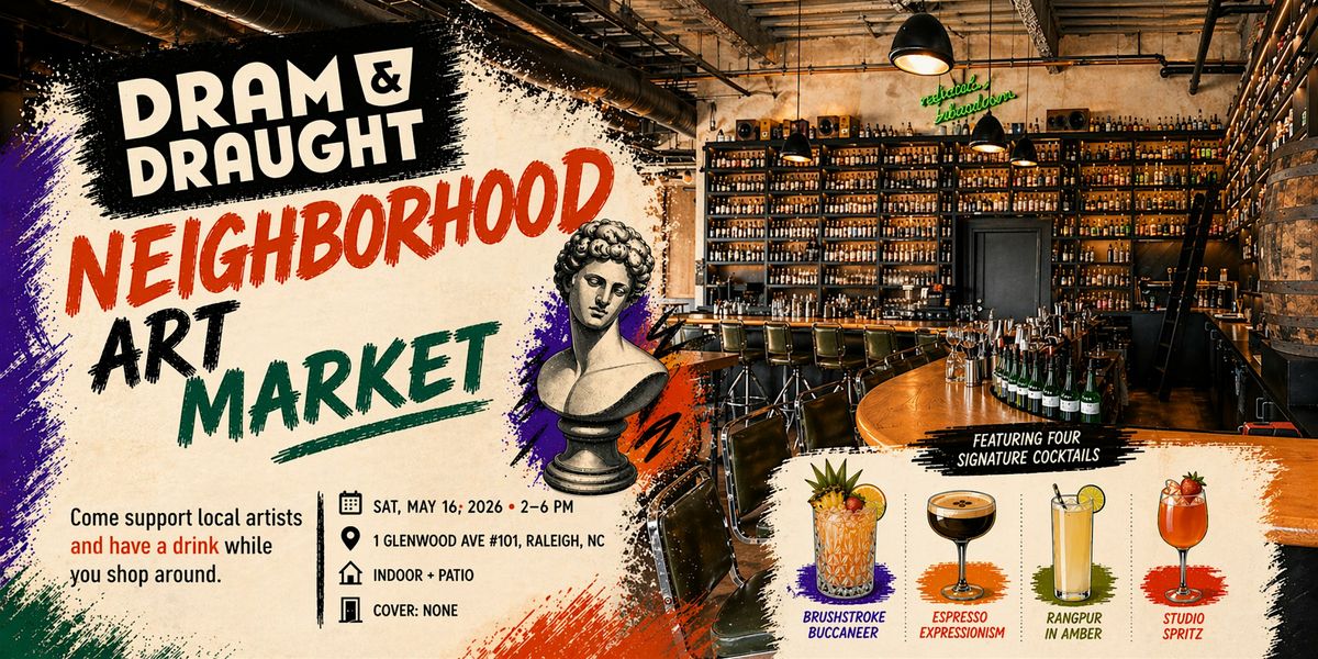Join us for a vibrant Neighborhood Art Market at Dram & Draught Raleigh, where creativity meets cocktails for an unforgettable experience!