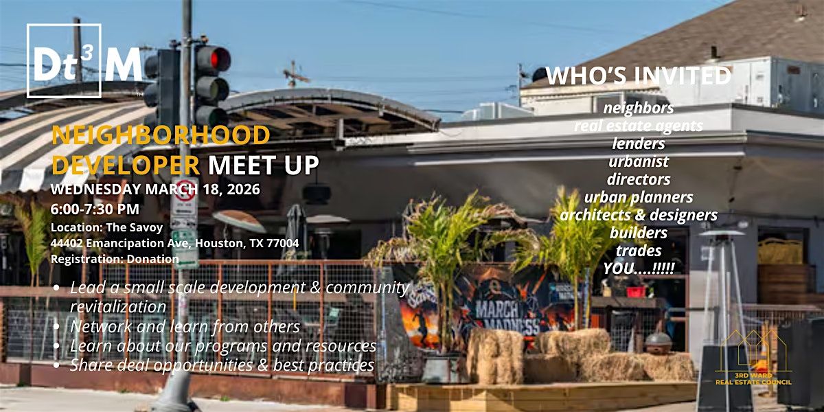 The 3rd Ward Real Estate Council invites you to an evening of connection, conversation, and community-building at our Neighborhood Developer Meetup.