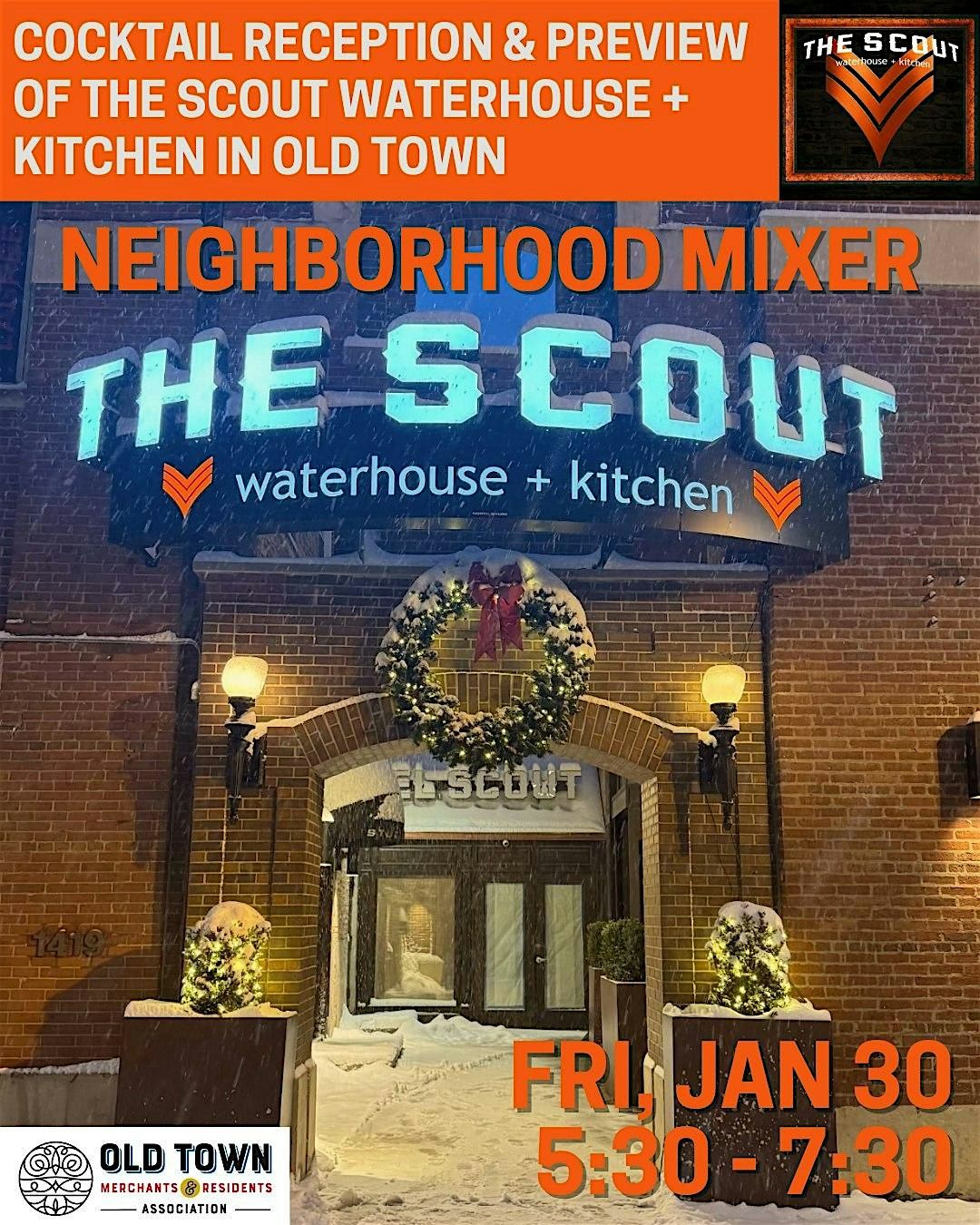 Join community members from Old Town and beyond for a neighborhood mixer and preview of The Scout Waterhouse + Kitchen.