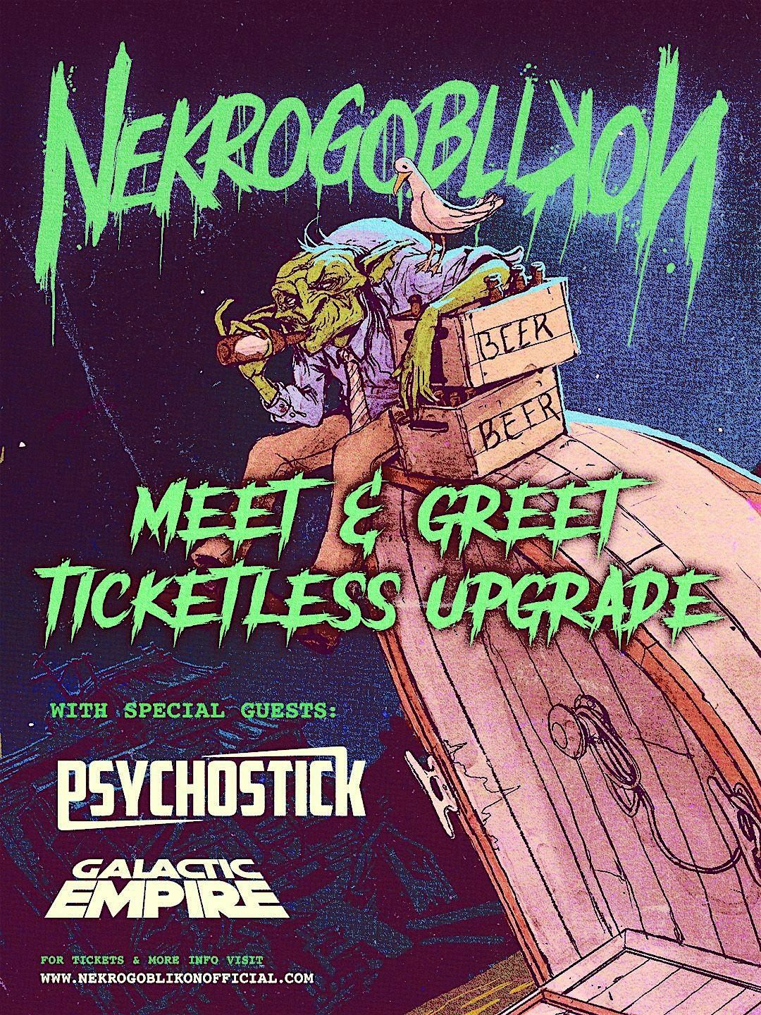 This is a ticketless upgrade only to meet members of Nekrogoblikon - During or before Soundcheck. Approx 2-3 hours before doors (Confirmations emails will be sent Day Of Show)