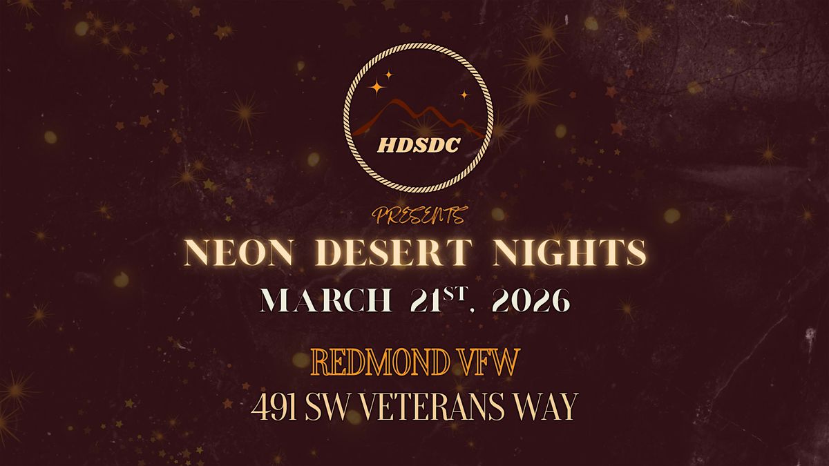 Welcome to the Neon Desert Dance Nights presented by High Desert Swing Dance Co! Get ready to cut a rug under the stars at the Redmond VFW, Central Oregon's Premier Dance Hall. Join us on March 21, 2026 at 6:00 for a night of music, lights, and non-stop dancing.
