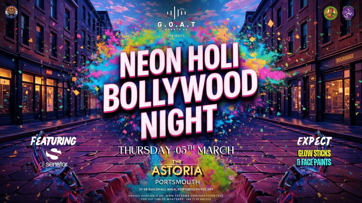 G.O.A.T EVENTS UK in collaboration with UOP Indian Society, Punjabi Sosciety, Tamil Society & Mallu Society brings to you all the biggest night of the year, Neon Holi | Glow in the dark- Bollywood Night.❤️💛💚💙💜🌟✨Portsmouth's Biggest Bollywood night once again takes over the legendary PORTS nightclub, UV NEON HOLI UNLEASHED AT THE ASTORIA🔥💥Expect THOUSANDS OF GLOWSTICKS | FACE PAINTS | UV LIGHTS | INSIDE THE CLUB #GREATESTOFALLTIMETHE BIGGEST BOLLYWOOD HOLI PARTY IN PORTSMOUTH⚡💣 Last year has been a series of MASSIVELY SOLD OUT nights!!🥵🤯🥰