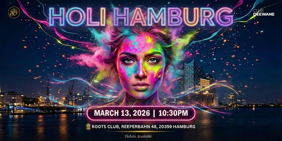 🎊 Hamburg, let's turn the night into a neon spectacle & celebrate Holi the Bollywood way! 🚀💃🕺