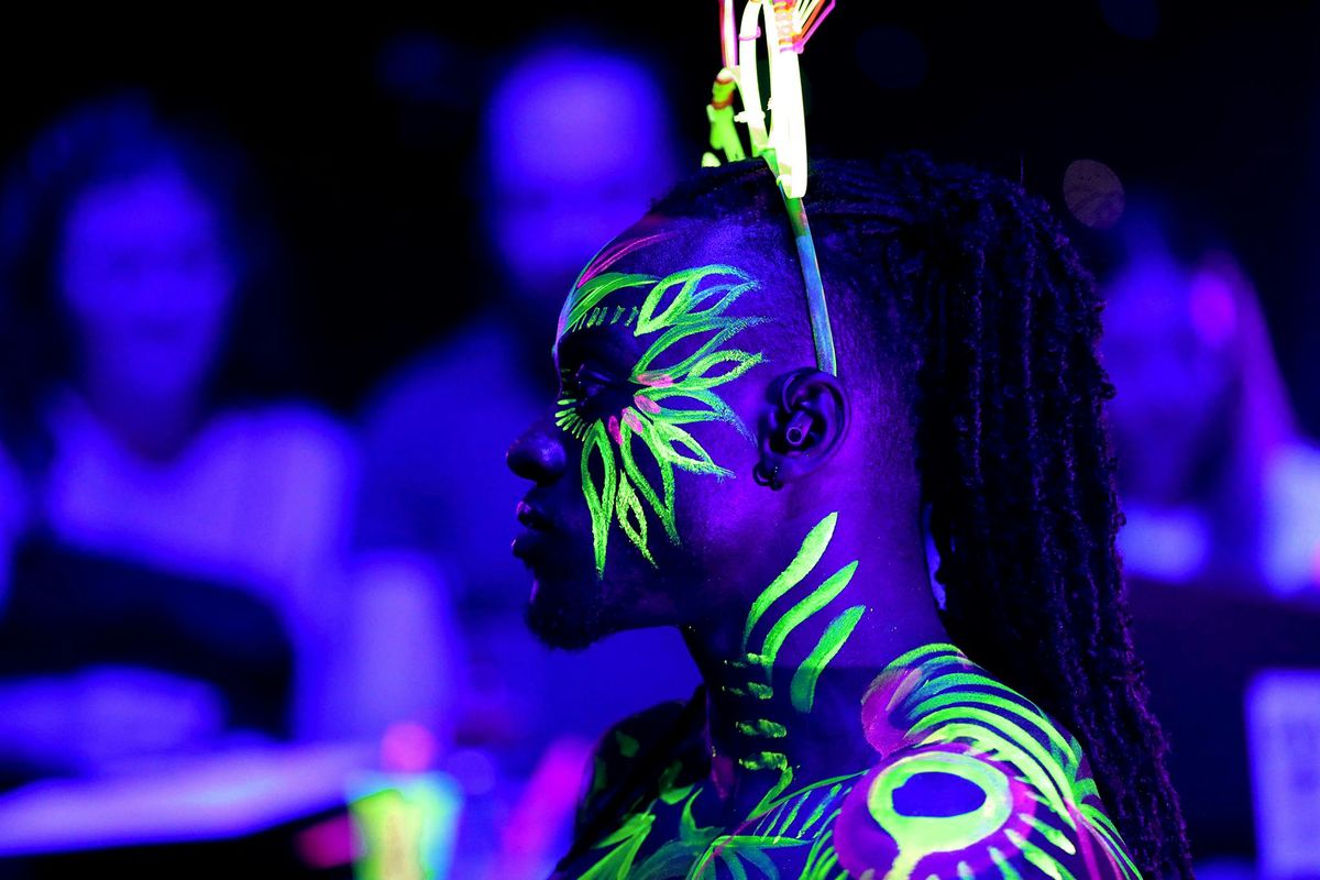 Join us at the Old Queen’s Head for a vibrant, UV-lit life drawing experience.Step into a world of colour, music, and creativity as our models become living neon sculptures, painted in UV-reactive body art and lit under blacklight.